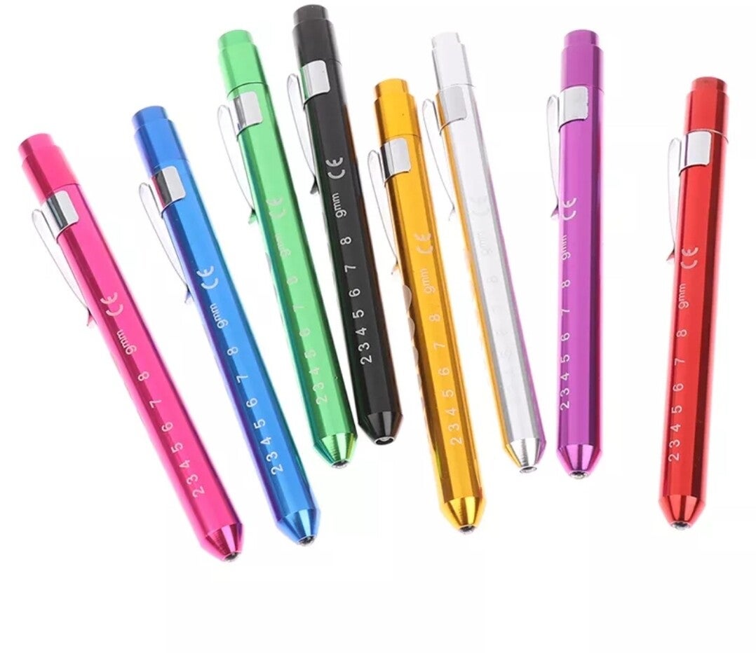 Aluminium penlight met helder lampje voor onder andere controle van de pupilreflex.Met bevestigingsclip voor je uniform. Handige drukknop voor aan/uit.