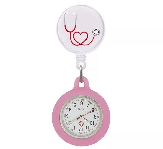 De polsteller sluit aan de achterkant met een clip waardoor je deze over het zakje van je uniform kan schuiven. Een horloge met flexilijn en secondewijzer. Het sileconen hoesje is eenvoudig te verwijderen. Voor een vrolijke look!