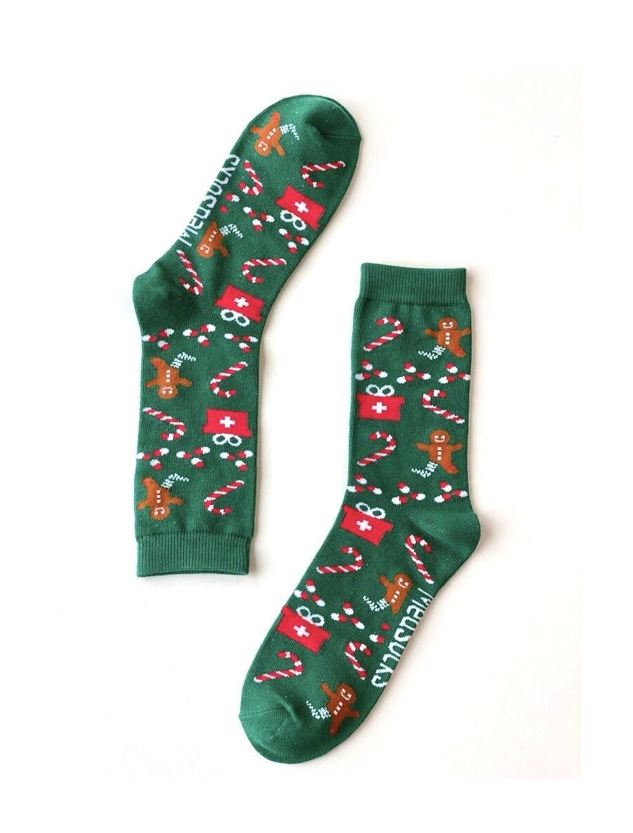 Doctor Santa Sokken, mooie kerstsokken met vrolijke kerstmannen, een ECG patroon en medische cadeautjes!