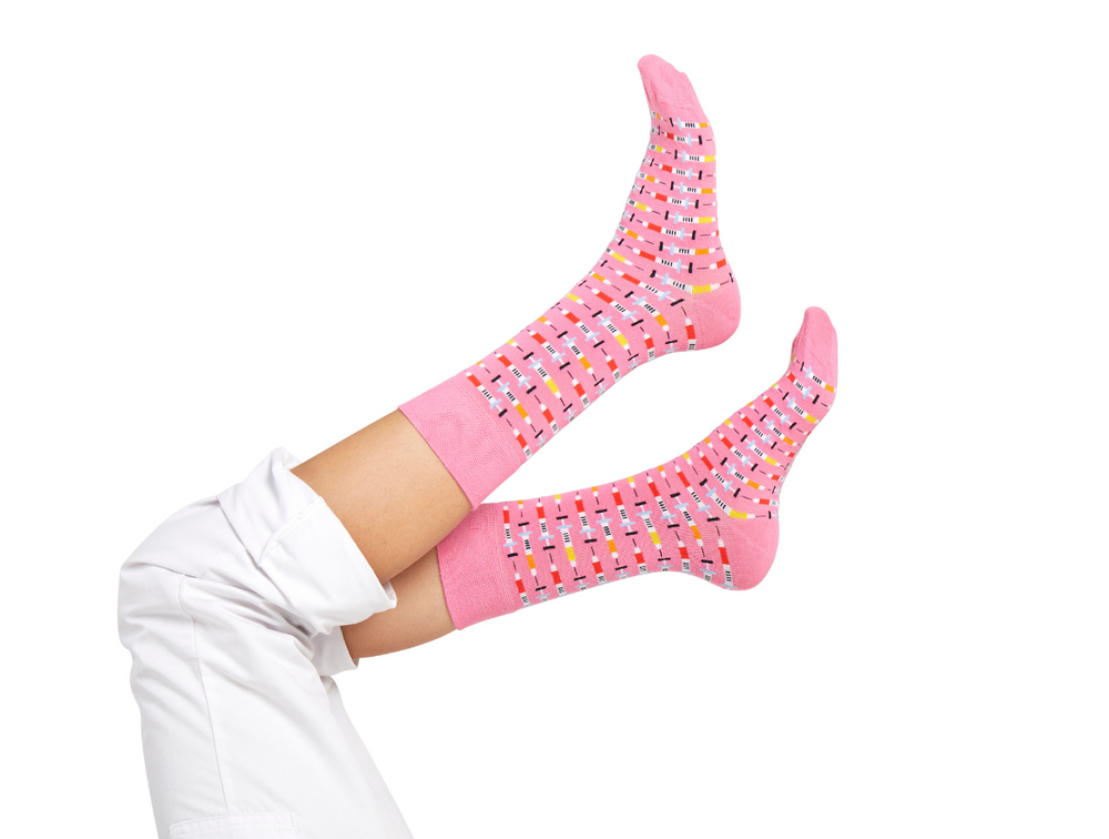 Dit is toch geweldig? Leuke sokken met injectie naalden er op!